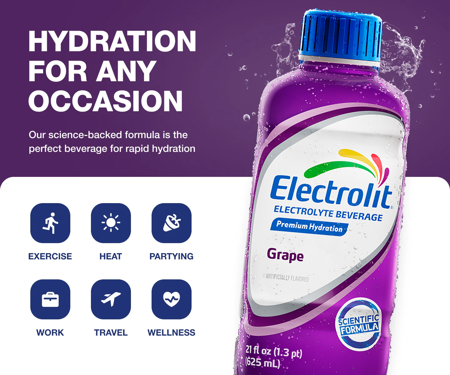 Electrolit features an optimal balance of electrolytes, designed to restore hydration levels quickly and effectively