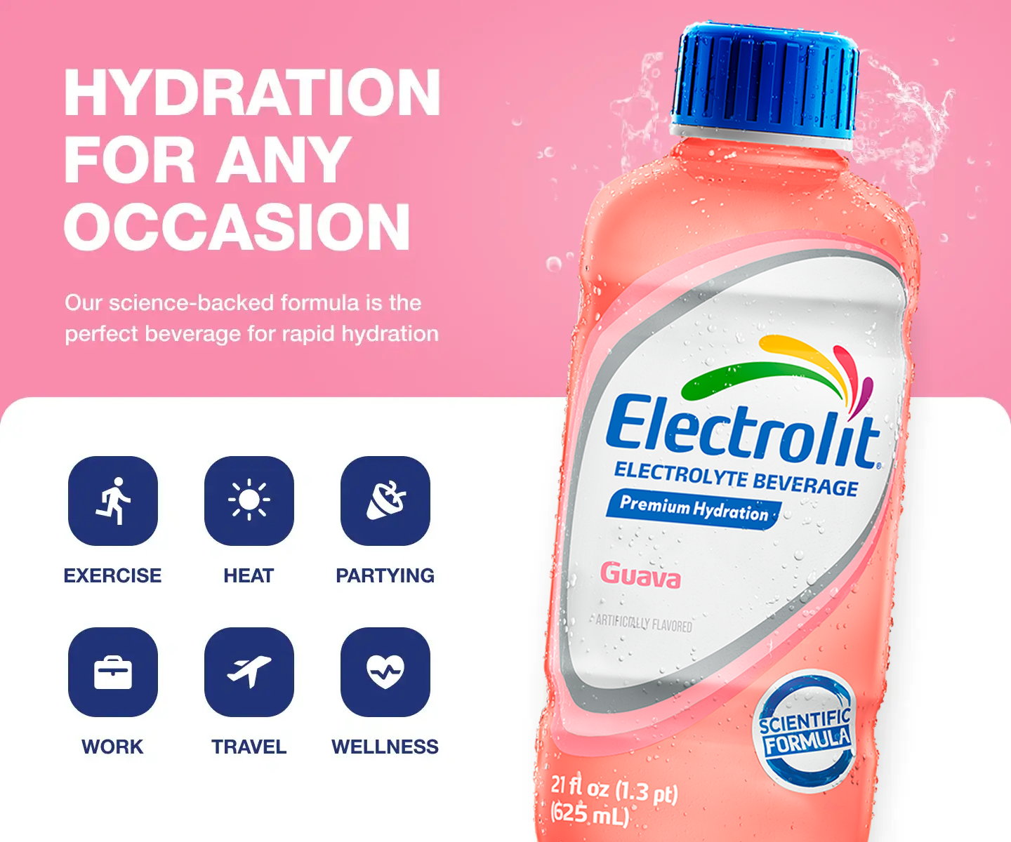 Electrolit is perfect anytime you need hydration! Drink it before, during, or after physical activity, during recovery, or anytime you’re feeling dehydrated from heat, travel, or a night out.